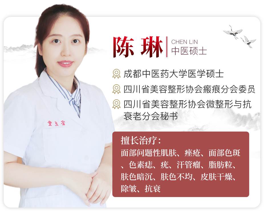 中西医美容:善于运用中西医结合方法,一对一辩证治疗面部问题性肌肤、痤疮、面部色斑(黄褐斑、雀斑、老年斑,真皮斑),色素痣、疣、汗管瘤、脂肪粒、肤色暗沉、肤色不均、皮肤干燥、除皱、抗衰等均有显著效果。